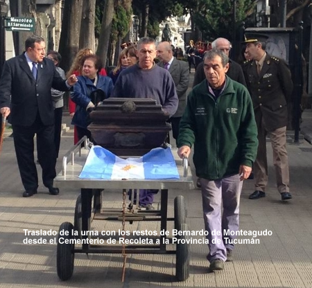 El viernes 24 de junio, en el cementerio de Recoleta, ante la presencia de una guardia de honor de los granaderos, fue retirado el féretro con los restos de Bernardo de Monteagudo, que se encontraba en la bóveda de Pablo Richieri, para ser trasladado a Tucumán