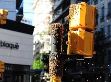 Hace un par de días sobre la columna de un semáforo de la esquina de Santa Fe y Montevideo apreció un panal poblado por gran cantidad de abejas, lo que generó preocupación entre los transeúntes y vecinos, por un hecho ocurrido hace días