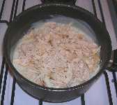 • Desmenuzar las pechugas de pollo e incorporar a la preparación anterior.