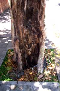 Sobre la calle Larrea, entre Pacheco de Melo y Peña, hay varios árboles, que evidentemente están enfermos y sus troncos están totalmente huecos.
