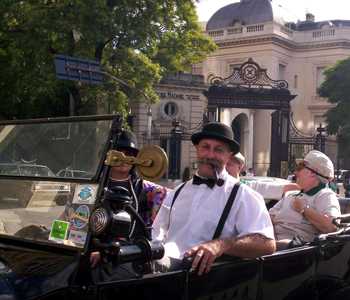 El recorrido tenía previsto finalizar a las 19.30 en la Av. de Mayo, frente a la Municipalidad donde los autos quedarían estacionados en 45º ofreciendo una exposición estática y después, según nos contó uno de los matrimonios que participaron del evento, el cierre sería con una cena en Puerto Madero, cuyo requisito sin equanum, era asistir con los autos y vestidos de época, para compartir entre todos los participantes una velada que seguramente será inolvidable para ellos.