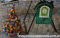 Recorrimos el predio, donde se habían instalado varios stand en los cuales se daban pautas para el cuidado del medio ambiente. En uno de ellos se explicaba a los niños cómo separar los residuos, qué materiales son reciclables y mostraban algunas cosas que se pueden hacer con ellos, por ejemplo un árbol de navidad armado con tapitas de gaseosas. En otro se mostraba cómo pedaleando en una bicicleta se puede generar energía eléctrica que alimentaba varias lámparas. Un stand tenía en el piso un juego (como el de la oca) donde los niños participaban arrojando un dado que les permitía avanzar y de acuerdo a la posición obtenida debían responder distintas preguntas sobre el cuidado del medio ambiente, que en caso de dar la respuesta acertada les permitía avanzar y acercarse a la meta.
