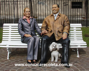 Hace pocos días, una tarde soleada, decidí ingresar a la Biblioteca Nacional y visitar las recientes esculturas colocadas en sus jardines: Evita y Perón, con su caniche blanco (realizada por el artista plástico Fernando Pugliese) y en la parte posterior del edificio, Julio Cortázar (mirando hacia avenida del Libertador y del otro lado, Jorge Luis Borges, mirando hacia la calle Austria.