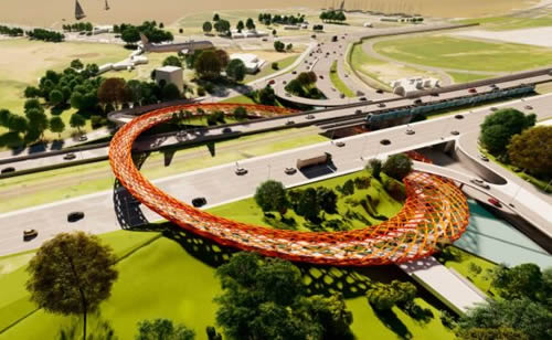 - El puente peatonal y ciclovía circular tendrá forma de anillo con un diámetro de 140 metros. Tendrá un mirador panorámico.