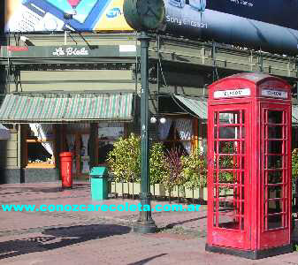 Esquina de R M Ortiz y Quintana, donde se encuentra esta emblemática confitería. Contrasta la cabina telefónica inglesa, en un barrio netamente Parisino.